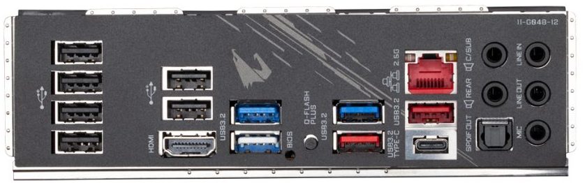 Dans l’ensemble, la connectique arrière est généreuse ; Gigabyte n’a pas lésiné sur les ports USB ni sur le réseau 2,5 GbE.